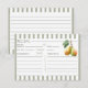 Collect timeless family favorites with this Perfect Pear Recipe Card, designed in a chic retro old money aesthetic. Featuring watercolor pears, sage green stripes, and elegant detailing, it’s perfect for bridal showers, couple showers, or kitchen-themed parties. Guests can share their best recipes, creating a keepsake the couple will treasure for years to come. This card pairs beautifully with the entire pear collection for a cohesive celebration.