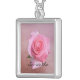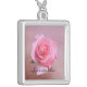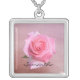 Pretty pendant necklace printed with a perfect pink rose on painted canvas look background and personalized name text all ready for you to edit in the easy Zazzle text editor. Beautiful and unique for birthday, Valentine's Day or any occasion gift. Rose image from ScrapObsessions.