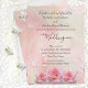 Classically romantic wedding invitation features a simple design of three gorgeous pink roses on a misty pink water color background. Accented with a scatter of glistening dew drops. Double sided print has coordinating design on the back. Just edit the text and optional date in the easy Zazzle text editor. Look for other matching items in this design at MonogramsandMonikers on Zazzle.