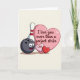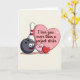 This design shows a dark gray bowling ball character on a creamy background, smiling wide with big shining eyes as if it just rolled over for a hug 🥰. Just behind it stands a classic white bowling pin with two red stripes, leaning in like a loyal partner in the lane. On the right side, a large glossy pink heart takes up much of the space, giving the scene a cozy, romantic balance ❤️. Across that heart, the message “I love you more than a perfect strike.” is placed in a casual handwritten style, set in a darker tone that stands out clearly against the pink. Beneath the main line, two smaller hearts sit close together, one light pink with the word “LOVE” in darker letters and the other a solid deep red. The rounded shapes, soft shading, and little highlights on the bowling ball and hearts make everything look smooth and candy-like, as if the characters are glowing with shared excitement. The composition keeps the bowling duo on the left and the heart message on the right, with gentle empty space around them on the creamy background and a few shiny reflections catching the light.