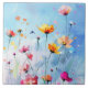 Perfect summer day, sunny sky and blooming flowers ceramic tile