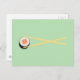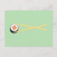 Japanese food, salmon sushi with chopsticks, fish and rice illustration.