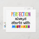 Inspirational message with a multicolor text design reads "Perfection always starts with mistakes", a great design for teachers, parents, educational professionals in an attempt to show students that making mistakes is okay!