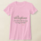 My overall review is that the T-shirt is nice, it fits true to size however the font is significantly smaller than advertised and you can't read it. The printing is unreadable and there is a strain to read it. It does not look like the advertised product. Maybe the shirt color is darker or a larger more visible font should have been used. Photos with and without flash and font is barely legible.
