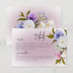 This wedding details enclosure card design features a simple, soft side loose bouquet of periwinkle blue, dusty mauve pink, cream white, rose pink, and soft yellow flowers and botanical greenery on a soft mauve pink blur oval and white background. It's delicate and elegant; modern yet with a vintage feel. Created by Simply Farmhouse Press, it is part of the Peri White Mauve Floral Modern Wedding suite of cards.