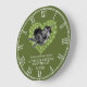 Gemstone peridot heart wedding anniversary clock. Personalize this clock with your own couples' photo, year of marriage, and names. The example reads Tianna and Dwayne Zadzisai 1st Peridot Wedding Anniversary and your marriage and anniversary date or message. Other matching items are available. Peridot green gem heart effect graphic art and design by Sarah Trett for www.mylittleeden.com