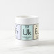 This mug shows a row of chemical elements from the periodic table that are named after America, France, Europe, Germany, and an imaginary British element added for laughs. Our new element has the chemical symbol Uk and a made-up atomic number and atomic mass. See if any of your friends are clever enough to know that Unitedkingdium is not a real element. This design is perfect for scientists, science teachers, nerds, anglophiles, or UK residents.