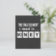 Periodic Table Money Element Funny Periodic Table Postcard designed by Nisha Prabhu. Show off your love for chemistry and money with this funny periodic table postcard featuring the "money" element. This clever design is sure to catch the attention of anyone who sees it. Perfect for students, teachers, or anyone who just loves a good pun. Get yours today and add some chemistry-themed humor to your collection!