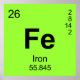 From the Periodic Table of Elements, the atomic number, symbol, name and atomic mass for the chemical element Iron. The background color can be changed when customizing.