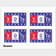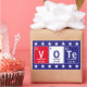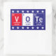Inspire others to vote with these cool science themed stickers featuring elements from the periodic table spelling out the word "Vote" in the red, white and blue colors of the United States flag bordered by a row of white stars. Elements include element name, weight, and atomic number.