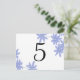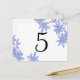 Customize these pretty Periwinkle Blue Daisies Wedding Table Numbers and create a different card for each table at your bridal shower, marriage reception or garden party. These elegant custom flowery wedding table numbers feature blue daisies adorning the corners with a white background.