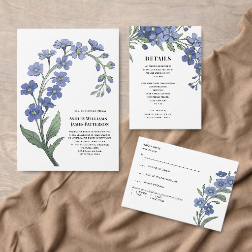 A periwinkle color palette sets this custom wedding wine bottle label apart from the rest. The design features a modern floral bouquet, and you may customize all of the text. Coordinating items available.