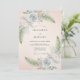 Delicate blossoms in soft periwinkle and blush hues intertwine with evergreen sprigs, evoking a whimsical, romantic mood. This design blends painterly floral artistry with a touch of natural elegance for a memorable occasion.