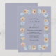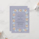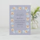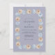 This design features a serene periwinkle backdrop adorned with a delicate arrangement of peach ranunculus and light blue roses. Muted eucalyptus leaves and soft greenery accent the floral composition, creating a dreamy and ethereal aesthetic. This romantic color palette offers a sophisticated and calming atmosphere for a spring or summer event.