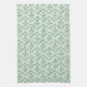 A decorative Kitchen Towel or Tea Towel, with a traditional ogee pattern of Periwinkle flower outlines in Green on a White background. Part of the Posh and Painterly 'Periwinkle Patch' collection.