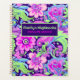 This planner features a high-contrast Periwinkle, Pink, and Lime retro floral pattern on the front and back. Personalize the front with your name and the current year.