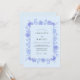 A delicate watercolor design features soft periwinkle blooms and lush greenery. The artistic floral arrangement evokes a gentle, romantic mood. Perfect for a springtime or ethereal celebration.