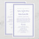 Elegant, minimalist periwinkle blue & white wedding ceremony program features a simple modern design with a double framed border in periwinkle blue on a crisp white background. Traditional, classic wording provides timeless sophistication. Personalize wedding ceremony details for your guests in trendy periwinkle calligraphy lettering and script. The back of the card matches with periwinkle blue on crisp white and is all about your wedding party. For optimal results replace template details with your own details leaving space between paragraphs as in the example. Capitalize & use all lower case where specified. Feel free to contact me at invitationsuites@gmail.com or with the message feature if you have questions regarding this or any of our products or have a custom color request.