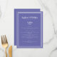 Simple, minimalist and elegant Wedding Menu features a contemporary design with a double frame crisp white border in on a trendy very pweri periwinkle blue background. Traditional wording provides timeless yet modern sophistication. Personalize wedding design with your menu details in white lettering and script. The back of the card matches in solid matching periwinkle.