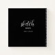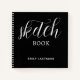 Personalized sketchbook with your name notebook. White trendy script and plain text on a black background.