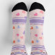 These socks are soft and comfortable. Good fit, the elastic around the calf does not leave a mark. The print is true to color, with colorful designs. The cookie trail and Christmas lights around the reindeer antlers are crisp and not blurry. .