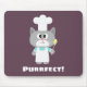 Cute Chef kitten with the word "Perrfect!" over an eggplant purple background colour.