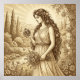 Inspired by classical mythology and antique illustration traditions, this artwork presents Persephone in a serene, contemplative moment, rendered in warm sepia tones and intricate botanical detail.