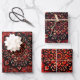 Persian carpet look in rose tinted field - three ,slightly different wrapping paper sheets in red , classic decorating style .Design by Alma wad .