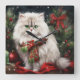 Persian Cat in Snow Christmas Square Wall Clock