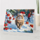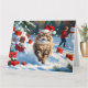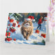 Persian Cat Sitting in Snow with Christmas Hat Card