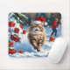 Persian Cat Sitting in Snow with Christmas Hat Mouse Pad