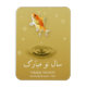 Persian New Year Happy Norooz illustration featuring a fish (symbol of life) jumping out of water; oriental mandala design in the background. New Year wishes in english and farsi.