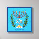 This image was adapted from an antique Persian Jewish tile and features a menorah with a Magen David (Star of David) framed by olive branches. The imperfections of the original, hand-painted image have been preserved. Add your own text.