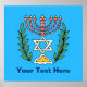 This image was adapted from an antique Persian Jewish tile and features a menorah with a Magen David (Star of David) framed by olive branches. The imperfections of the original, hand-painted image have been preserved.