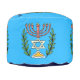 This image was adapted from an antique Persian Jewish tile and features a menorah with a Magen David (Star of David) framed by olive branches. The imperfections of the original, hand-painted image have been preserved. Add your own text on the top.