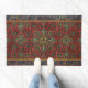 Persian Carpet - Arabic art pattern, Emile Prisses d’Avennes, printed in the book La Decoration Arabe. (1885). This image is a photographic reproduction based on an antique is a richly detailed Persian rug with an intricate design. It features a bold, symmetrical pattern in the center, utilizing geometric and floral motifs. The dominant colors are deep red with accents of gold, blue, and green. The border of the rug contains a repeated floral pattern, adding an additional layer of ornate detail. The craftsmanship is evident in the complex interwoven design elements and vibrant colors.