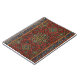 Persian Carpet - Arabic art pattern, Emile Prisses d’Avennes, printed in the book La Decoration Arabe. (1885). This image is a photographic reproduction based on an antique is a richly detailed Persian rug with an intricate design. It features a bold, symmetrical pattern in the center, utilizing geometric and floral motifs. The dominant colors are deep red with accents of gold, blue, and green. The border of the rug contains a repeated floral pattern, adding an additional layer of ornate detail. The craftsmanship is evident in the complex interwoven design elements and vibrant colors.