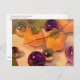 Blank postcard featuring the oil painting "Persimmons and Purple Ornaments" by Sarah Sedwick