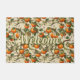 Persimmons illustration. Fruits, flowers and leaves on branches. Seamless pattern. Custom background color. Custom text.