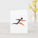 A black and orange icon symbol of a person running. This design looks really effective on these Greeting Card