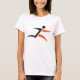 A black and orange icon symbol of a person running. This design looks really effective on this Womens T-Shirt
