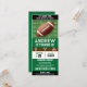 Plain white envelopes are included with paper invitations and will come to fit the invitation size you select. If you don’t need the envelopes, you may choose to not receive them by selecting the dropdown below "Envelopes" and choosing "None." If you’d like to have a design on your envelopes, you can browse all of these available envelopes to find the design that complements your Personal American Football Birthday Party Ticket Invitation.