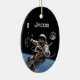 Personalize this dramatic photo of an astronaut performing a space walk in orbit above the Earth, with a full moon in the far darkness of space. Simply substitute the name of your favorite future astronaut for the one shown. The back side of this very special ornament has a photo of the full moon.