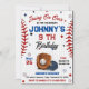 The design features classic baseball elements, such as bats, balls, and gloves, creating an exciting and vibrant atmosphere. Make it uniquely yours by personalizing the invitation with the name and photo of the birthday VIP, adding a special and memorable touch to the celebration.