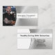 Faux brushed steel sets off the background of this business card design featuring a photo placeholder on the left with template name and title on the right. The back includes a coordinated design and colors with text fields for the business name and details. Replace the placeholder photo with your vertical format photograph. Fill in the template fields, remove text or click customize to select a font style, size, and color you like.The placeholder photo is courtesy pexels.com.