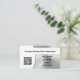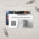 Faux brushed steel sets off part of the background of this business card design featuring a photo placeholder on the back. Fill in the template fields or click customize to select a font style, size, and color you like. Replace the placeholder photo with your vertical format photograph for the back and for the front replace the QR code with yours.The placeholder photo is courtesy pexels.com.