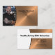 Faux brushed copper sets off the background of this business card design featuring a photo placeholder on the left with template name and title on the right. The back includes a coordinated design and colors with text fields for the business name and details. Replace the placeholder photo with your vertical format photograph. Fill in the template fields, remove text or click customize to select a font style, size, and color you like.The placeholder photo is courtesy pexels.com.