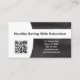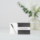 Black leather sets off the background of this business card design featuring a photo placeholder on the left with template name and title on the right. The back includes a coordinated design and colors with text fields for the business name and details. Keep or replace the placeholder photo with your vertical format photograph and replace the QR code with yours. Fill in the template fields or click customize to select a font style, size, and color you like.