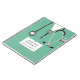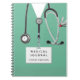Unique medical journal notebook for keeping track of health progress, diet, doctor visits information, medication, and other personal or patient health-related items. Edit text to customize.
