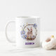 Personal Name Funny Bunny Happy Easter Purple Floral Wreath Coffee Mug . Funny Bunny Happy Easter Day Are you a fan of Easter Day? , a Personalized easter day card featuring a photo of you and your partner, a classic, trendy, and decorative Holiday card, with a happy easter day text quote in stylish faux black font. the saying "your own message", a quote for you to keep or change to your own, and your names.